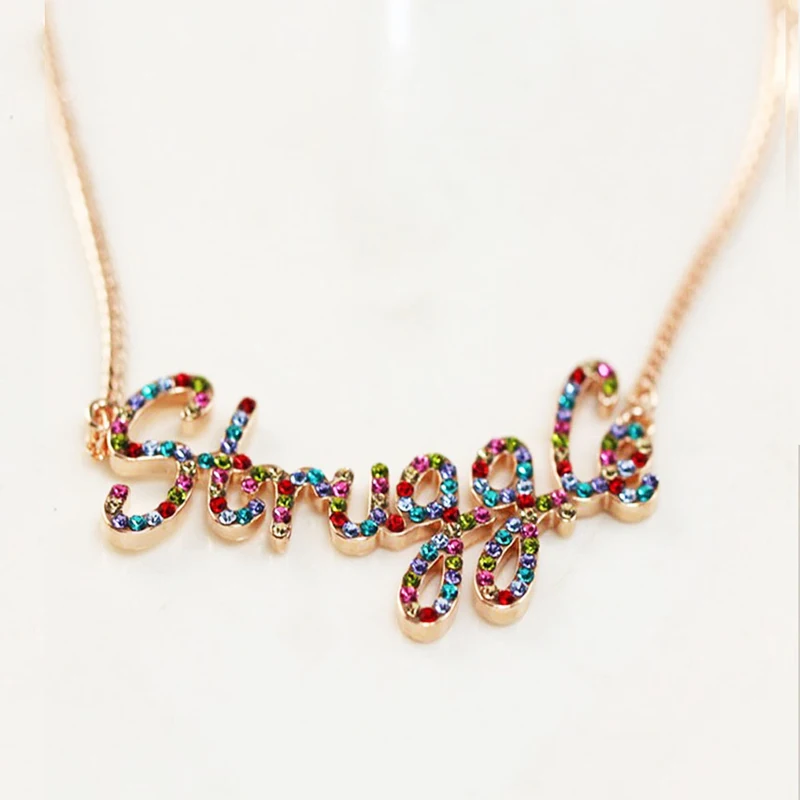 Personalized Custom Iced Out Colorful Diamond Nameplate Necklaces Bling Pave With Zircon Name Pendant Necklace Cuban Chain Womem