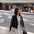 Costomer Scores and Reviews for Women Black Faux PU Leather Jacket Spring Autumn Short Outerwear Slim Long sleeve Turndown collar Streetwear Female Cropped Coat